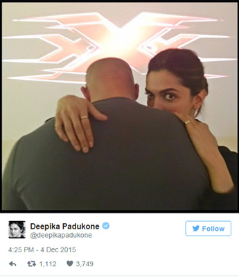 যদিও ‘পিকু’র সহ অভিনেতা ইরফান খান আগেই অভিনন্দন জানিয়েছিলেন দীপিকাকে। ফেসবুকে ইরফান লিখেছিলেন, ‘ভিন ডিসেলের সঙ্গে হলিউড ডেব্যুর জন্য আমাদের আদরের পিকুকে অনেক অভিনন্দন।’