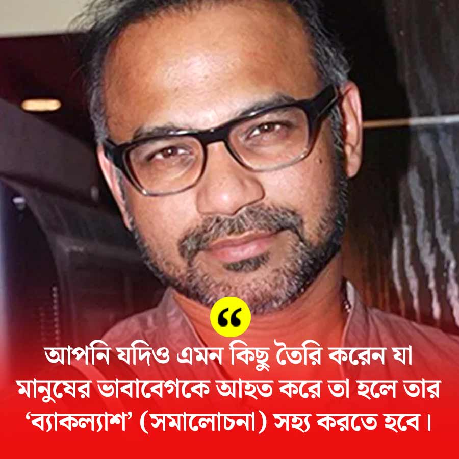 অভিনয়: যখন আপনি কোনও এমন বিষয় নিয়ে ছবি বানান যার মধ্যে স্পর্শকাতর বিষয়বস্ত রয়েছে, তখন আপনাকে এমন কিছু জিনিস কিংবা কিছু নির্দিষ্ট গোষ্ঠীর নজরে পড়তে হয়। সমাজমাধ্যম সকলকে একটা করে মাইক হাতে দিয়েছে। এটা মেনেই নিতে হবে সবাই কিছু না কিছু বলবে। কতটা আপনি শুনবেন সেটা আপনার বিষয়। আমাদের কাজটা করে যেতে হবে। তাই সকলের কথায় কান দিলে মাথাটা খারাপ হয়ে যাবে।