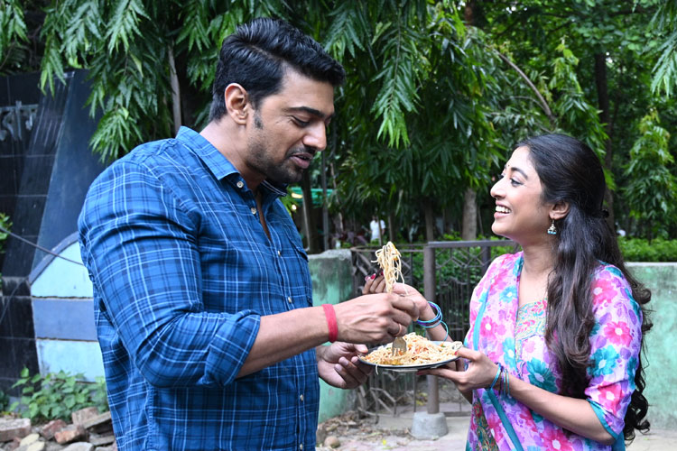 মিষ্টির দোকানের সামনে দেবের সঙ্গে শুট চলছিল পাওলি ও সোহিনী সেনগুপ্তের। ‘‘আমার চরিত্রটি এমন এক জনের যে এই বাড়ির কর্ত্রীর জায়গা পেতে পারত, কিন্তু পায়নি। তবে ন্যারেটিভে গুরুত্বপূর্ণ,’’ বললেন সোহিনী।
