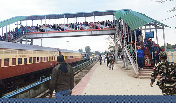 কথা ছিল, পাঁচ দিন ধরে একটি গানের শ্যুটিং হবে এই স্টেশনে। ‘রেঙ্গুন’ ছবির কাহিনি দ্বিতীয় বিশ্বযুদ্ধের আবহে গড়া। যে হেতু ওই যুদ্ধের অনেকটাই হয়েছিল অরুণাচল-মণিপুর-মায়ানমার মিলিয়ে তাই শ্যুটিংয়ের জন্যেও বিশাল দলবল নিয়ে সেখানেই শ্যুটিং করতে চেয়েছেন। কিন্তু ভিড় সামলায় কে! ট্র্যাকের উপরে উঠে যাচ্ছে জনতা! মাইকে বার বার ঘোষণা হচ্ছে, ‘দয়া করে আপনারা সরে যান। না হলে আমাদের অন্যত্র চলে যেতে হবে।’ কিন্তু কে শোনে কার কথা? ভোর সাড়ে চারটেয় ‘কল টাইম’ থাকলেও শাহিদ-কঙ্গনা অধিকাংশ সময় বেরোতেই পারছেন না। গানের অন্য অংশগুলির অল্প শ্যুটিং হয়েছে। যে টুকু সময় শ্যুটিং করেন শাহিদ-কঙ্গনা— ভিড় সামলাতে নাকাল হয় পুলিশ। ভিড়ের চাপে প্রথম দফার চারদিনের শ্যুটিং নমো নমো করে সেরে কঙ্গনা-শাহিদ রওনা হয়ে যান গুয়াহাটি হয়ে মুম্বই। ক’দিন পরে তাঁরা ফিরলে আবার শ্যুটিং শুরু হবে অরুণাচলের অন্য জায়গায়। টিম রেঙ্গুনের সদস্যদের উদ্বেগ, সেখানেও না আবার এমন কাণ্ডই হয়!