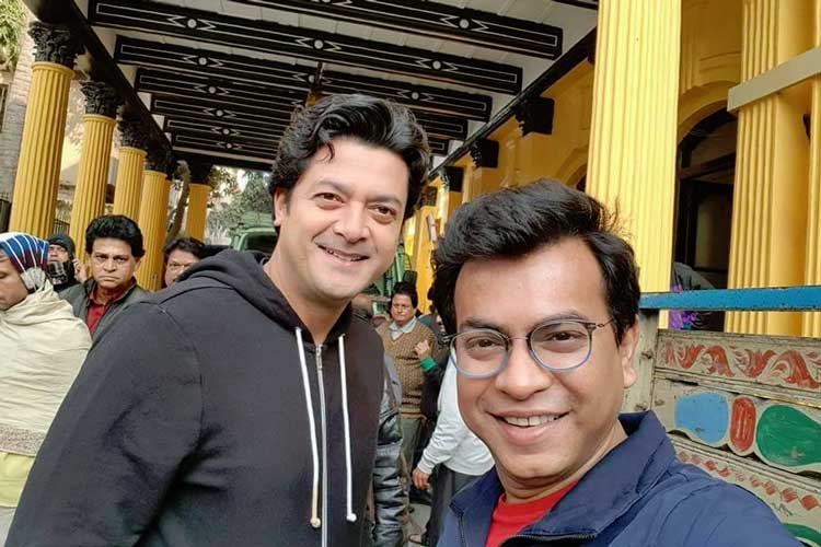 ‘এক যে ছিল রাজা’-র সেটে যিশু এবং রুদ্রনীল। ছবি: ফেসবুক