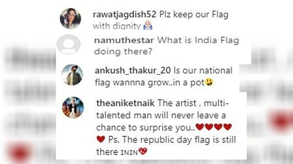 কিন্তু টবের মধ্যে জাতীয় পতাকা কেন থাকবে?— তা নিয়েই প্রশ্ন তুলেন নেটাগরিকদের একাংশ। নিমেষে উড়ে আসতে থাকে একের পর এক নেতিবাচক মন্তব্য। একজন লেখেন, “আমাদের জাতীয় পতাকাকে সম্মানের সঙ্গে রাখুন।” আবার আর একজনের তির্যক মন্তব্য, “আমাদের জাতীয় পতাকা কি টবের মধ্যে বেড়ে উঠবে?” তবে সবাই যে বাঁকা কথা ছুড়ে দিয়েছেন এমনটা নয়। অনেকেই কৌতূহলবশত জানতে চেয়েছে, “ফ্ল্যাগ কেন ওখানে রাখা হয়েছে? এর পেছনে কারণ কী?”