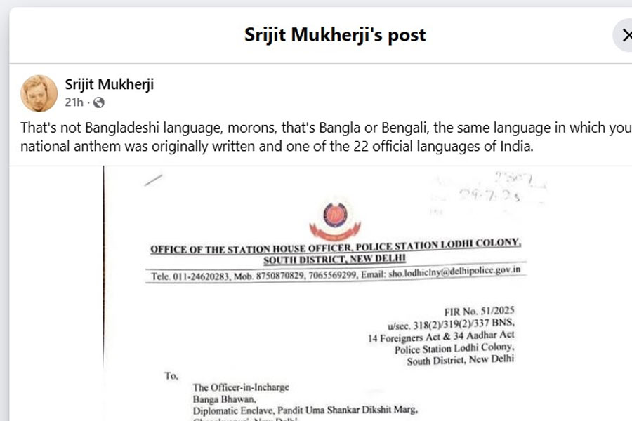 কেন্দ্রীয় স্বরাষ্ট্রমন্ত্রী অমিত শাহের অধীন দিল্লি পুলিশ বাংলা ভাষাকে ‘বাংলাদেশের ভাষা’ বলে অভিহিত করেছে। বিষয়টি নিয়ে প্রথমে সমাজমাধ্যমে তীব্র প্রতিবাদ জানান তৃণমূলের সর্বভারতীয় সাধারণ সম্পাদক অভিষেক বন্দ্যোপাধ্যায়। বিষয়টিকে কেন্দ্র করে ক্ষোভে ফুঁসছে তৃণমূল শিবির। পদ্মশিবিরের সঙ্গেও তরজা শুরু হয়েছে। বাংলা ভাষাকে বাংলাদেশিদের ভাষা বলায় ক্ষোভ তৈরি হয়েছে টলিপাড়ার অন্দরেও। পরিচালক সৃজিত মুখোপাধ্যায় তাঁর সমাজমাধ্যমে ক্ষোভ উগরে দিয়েছেন।