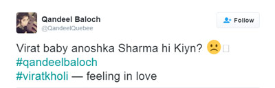 সম্প্রতি টুইটারে বিরাটকে নিয়ে স্ট্যাটাস দিয়েছেন কান্দিল। লিখেছেন, ‘বিরাট বেবি, অনুষ্কা শর্মাই কেন?...ফিলিং ইন লভ।’