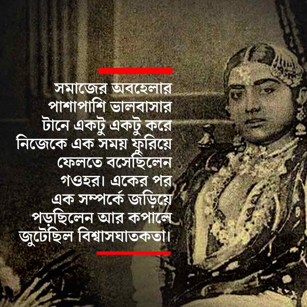 গান গেয়ে নিজেই তিনি যথেষ্ট অর্থ রোজগার করতে পারতেন। ছগনের অর্থ নয়, ভালবাসার জন্য কলকাতা ছেড়ে তিনি বারাণসী চলে আসেন। সেই ছগন তাঁকে স্রেফ ব্যাবহার করে ছেড়ে দিলেন। মনের সঙ্গে লড়াই করতে করতে ১৮৯১ সালে আবার কলকাতায় ফিরে আসেন গওহর। বুঝতে পারেন, ধনী ব্যাক্তির কাছে ক্ষণিকের অতিথি হয়ে আসা বাইজিরা শুধু আমোদের বস্তু।
