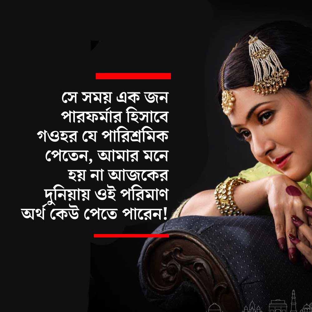 এখন ভাবলে মনে হয়, কত সহজে নিজের মুন্সিয়ানা সম্পর্কে শ্রোতাদের পরিচয় করিয়ে দিয়েছিলেন গওহর। আজকের দিন একেই তো আমরা ‘ব্র্যান্ডিং’ বলি। সময়ের চেয়ে অনেকটাই এগিয়েছিলেন তিনি।