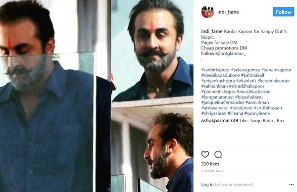 রণবীরের মেকওভারে চমকে গিয়েছেন সকলেই। হুবহু এখনকার সঞ্জয় দত্তের মতোই লাগছে রণবীরকে। কপালে তিলক। এক্কেবারে যেভাবে সঞ্জয় দত্ত লাগান। তার উপরে গোঁফটাকেও রণবীর পাকিয়েছেন দত্তবাবুর মতোই।