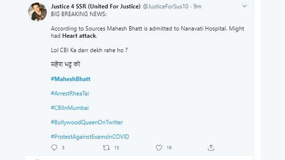 বেশ অনেক বছর পর ‘সড়ক ২’ ছবি দিয়ে পরিচালনায় কামব্যাক করছেন মহেশ। কিন্তু সুশান্তের মৃত্যুর পর রিয়ার সঙ্গে ঘনিষ্ঠতার খবরে মহেশের উপর ক্ষুব্ধ সুশান্ত অনুরাগীরা। সে প্রভাব পড়েছে ছবির ট্রেলারেও। ভারতের সবচেয়ে বেশি ‘ডিজলাইকড’ ট্রেলার হিসেবেও ‘জায়গা’ করে নিয়েছে ‘সড়ক ২’। কিছু দিন আগে আবার রিয়া এবং মহেশের ব্যক্তিগত কিছু চ্যাটও ফাঁস হয়ে গিয়েছে মিডিয়ায়। যেখানে সুশান্তের সঙ্গে সম্পর্কে ‘মুভ অন’ করার জন্য রিয়াকে প্রশংসা করেছেন মহেশ। একই সঙ্গে মহেশ এ-ও লিখেছেন, রিয়ার বাবাও মেয়ের এই সিদ্ধান্তে খুশি হবেন। সুশান্ত কাণ্ডে মুম্বই পুলিশ ডেকে পাঠিয়েছিল মহেশ ভট্টকে। সিবিআইয়ের অফিসে কি ডাক পড়বে পরিচালকের, সেটাই দেখার।