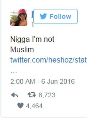 টুইটারেও ভক্তদের প্রশ্নে নাজেহাল মিয়া অবশেষে মুখ খুলেছেন এ নিয়ে। তিনি লিখেছেন, ‘আমি মুসলিম নই।’ আর এই উত্তরে ফের বিতর্ক শুরু হয়েছে ওয়েব দুনিয়ায়। যদিও ফের মিয়া মুখে কুলুপ এঁটেছেন। তাঁর এই টুইটের এখনও কোনও ব্যাখ্যা দেননি তিনি।