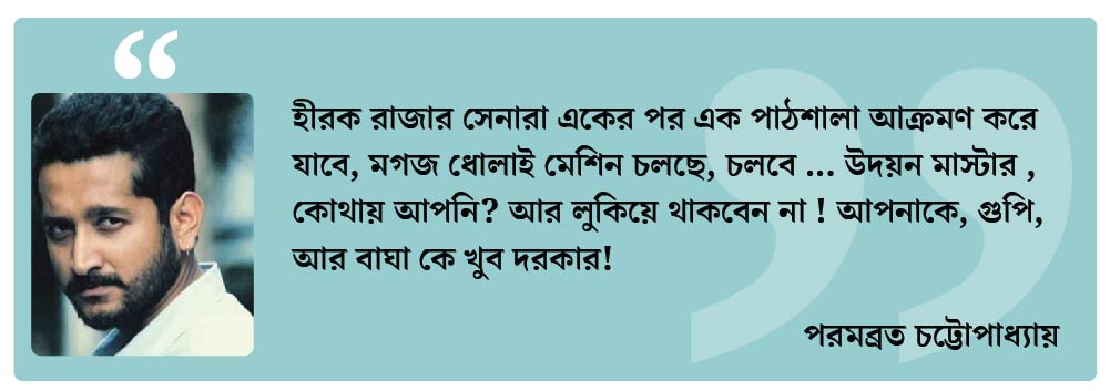 গতকালই নিজের টুইটার থেকে অভিনেতা পরমব্রত চট্টোপাধ্যায় লেখেন, “হীরক রাজার সেনারা একের পর এক পাঠশালা আক্রমণ করে যাবে, মগজ ধোলাই মেশিন চলছে, চলবে ... উদয়ন মাস্টার , কোথায় আপনি? আর লুকিয়ে থাকবেন না ! আপনাকে, গুপি, আর বাঘাকে খুব দরকার!” পরমব্রতর ওই টুইটের সমর্থন জানিয়ে নেটিজেনদের অধিকাংশ কমেন্ট সেকশনে লেখেন, “পারবে না হীরকের রাজা, পারবে না। এ ভাবে পাঠশালা বন্ধ করতে পারবে না।” কারও বক্তব্য, “উদয়ন মাস্টারকে নিজের মধ্যে অনুভব করার সময় এসে গেছে। তাঁকে আলাদা করে খোঁজার দরকার নেই।”