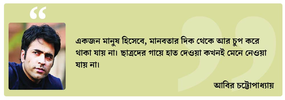 অন্যদিকে আবার কবি সুকান্ত ভট্টাচার্যের ‘আঠারো বছর বয়স’ কবিতার একটি লাইন উল্লেখ করে আবির লেখেন, “এ দেশের বুকে আঠেরো আসুক নেমে”। আনন্দবাজার ডিজিটালকে আবির বলেন, “একজন মানুষ হিসেবে, মানবতার দিক থেকে আর চুপ করে থাকা যায় না। ছাত্রদের গায়ে হাত দেওয়া কখনই মেনে নেওয়া যায় না।”