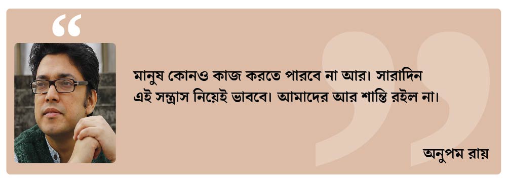 ঘটনায় ক্ষোভ প্রকাশ করেছেন গায়ক অনুপম রায়ও। আনন্দবাজার ডিজিটালকে অনুপম বলেন, “মানুষ কোনও কাজ করতে পারবে না আর। সারাদিন এই সন্ত্রাস নিয়েই ভাববে। আমাদের আর শান্তি রইল না। একের পর এক শিক্ষা প্রতিষ্ঠানে আক্রমণ দেখে যাচ্ছি। থামছে তো না। উল্টে বাড়ছে। দরকার আরও জোরালো প্রতিবাদের।”