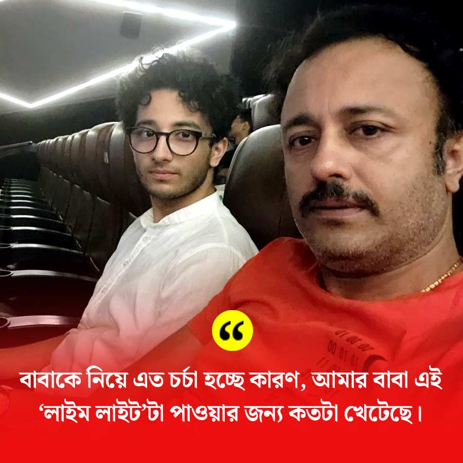 আসলে আমার বাবা তার সংবেদনশীলতা, কষ্ট-দুঃখ কখনও আমার কাছে গোপন করেনি। আবার আমি এটাও জানি, আজকে আমার বাবাকে নিয়ে যে এত চর্চা হচ্ছে, তার কারণ ‘লাইম লাইট’। আর সেটা পাওয়ার জন্য বাবাকে কতটা পরিশ্রম করতে হয়েছে, সেটাও বুঝি আমি। খারাপ যে লাগে না তা নয়। কিন্তু সত্যিটা কী, আমরা জানি। অন্য কিছু নিয়ে ভাবি না। বাবা আমার ‘রোল মডেল’ নয়, বাবা আমার বন্ধু।