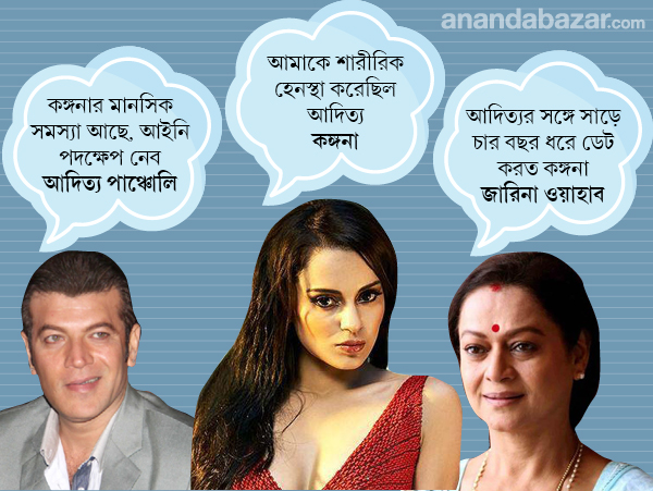 বেশ কয়েক দিন আগে, নিজের ১৭ বছর বয়সে বাবার বয়সী একজনের কাছে শারীরিক ভাবে হেনস্থা হওয়ার কথা প্রকাশ্যে এনেছিলেন কঙ্গনা। তখন সরাসরি কারও নাম না বললেও সম্প্রতি অভিযোগের আঙুল তুলেছেন আদিত্য পাঞ্চোলির দিকে। সে সময় নাকি আদিত্যর স্ত্রী জারিনার কাছে সাহায্যের জন্যও গিয়েছিলেন কঙ্গনা। কিন্তু জারিন নাকি তাঁকে ফিরিয়ে দেন। কঙ্গনার কথায়, “আমি ওর মেয়ের থেকেও এক বছরের ছোট ছিলাম। আমি ওর স্ত্রীয়ের কাছে গিয়ে বলেছিলাম, আমাকে বাঁচান। কারণ এতটাই ছোট ছিলাম যে আমার সঙ্গে যা ঘটেছিল তা বাবা-মাকেও বলতে পারিনি।” কিন্তু জারিন সে সময় তাঁকে কোনও সাহায্য করেননি বলে অভিযোগ করেন কঙ্গনা। এর পর বাধ্য হয়ে কঙ্গনা পুলিশের সাহায্য চেয়েছিলেন। সে সময় শুধুমাত্র সতর্ক করেই নাকি আদিত্যকে ছেড়ে দেয় পুলিশ।