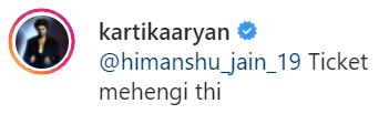 প্রশ্ন করতেই যে উত্তর দিলেন কার্তিক তাতে আরও এক প্রস্থ চমকে ওঠার পালা। অভিনেতা বললেন, 'টিকিটের দাম বড্ড বেশি ছিল।'