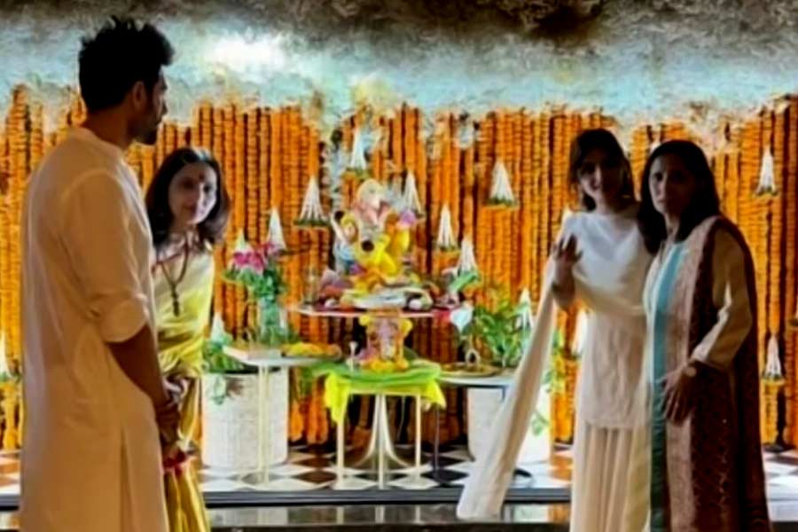 প্রেমের কথা তাঁরা মুখে স্বীকার করেননি ঠিকই। কিন্তু গণেশচতুর্থীতে ছড়িয়ে পড়া একটি ছবি অন্য কথা বলছে। ছবিতে দেখা যাচ্ছে, পরিবারের সঙ্গে গণেশপুজোয় মেতেছেন দুই তারকা। কার্তিক ও শ্রীলীলার পোশাকেও রংমিলান্তি। দু’জনেই পরেছেন সাদা পোশাক। ছবিতে কার্তিককে দেখা যাচ্ছে শ্রীলীলার মায়ের পাশে দাঁড়াতে। অন্য দিকে, শ্রীলীলা দাঁড়িয়েছেন কার্তিকের মায়ের পাশে। এই ছবি দেখে অনুরাগীরা প্রায় নিশ্চিত, সম্পর্কে আছেন দুই তারকা।