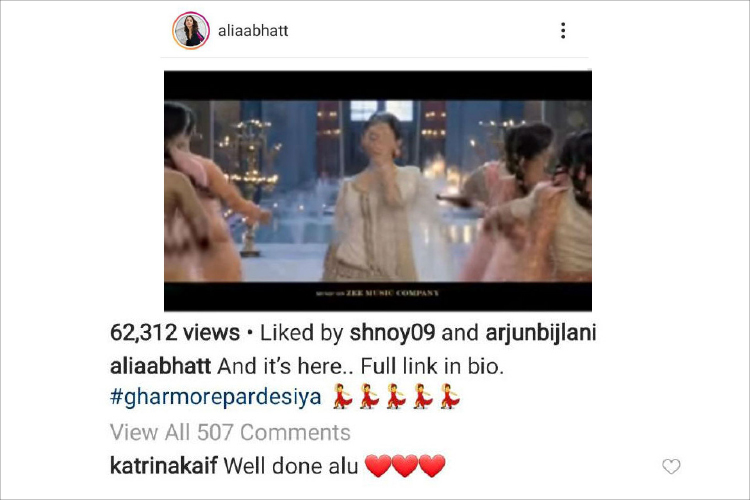 চলতি এপ্রিলে মুক্তি পাবে আলিয়ার আগামী ছবি ‘কলঙ্ক’। তারই একটি ভিডিয়ো সোশ্যাল মিডিয়ায় শেয়ার করেছেন তিনি। সেখানে ক্যাটরিনা মন্তব্য করেছেন, ‘ওয়েল ডান আলু…।’