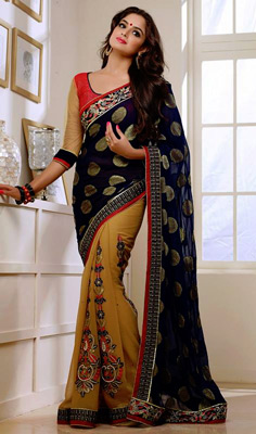 কোসা সিল্কের ওপর বেনারসির পাড় বা বেনারসির মতো আঁচল দেওয়া শাড়িরও চলছে খুব। কোনওটার পাড় আড়াই ইঞ্চি, তো কোনওটায় আবার চার-পাঁচ ইঞ্চি। কোনও শাড়ির পাড় আবার দশ ইঞ্চি চওড়া। যে কোনও দিন সন্ধেয় কনট্রাস্ট ব্লাউজ দিয়ে পরতে পারেন এই শাড়ি।
