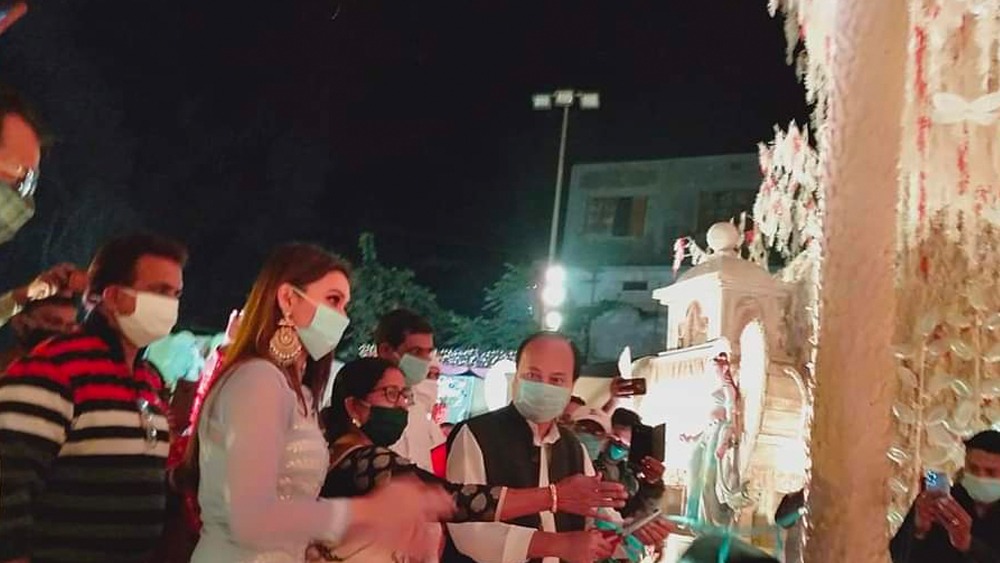 পাড়ার পুজো উদ্বোধনে মিমি