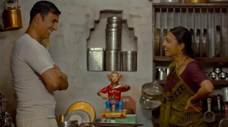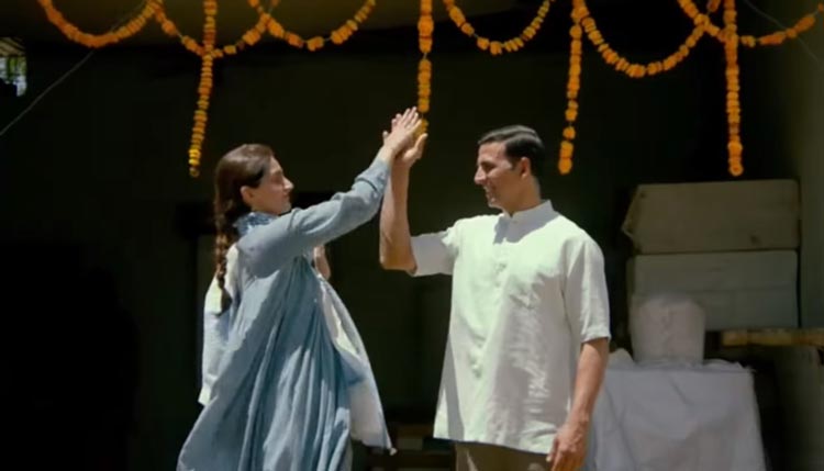 ‘প্যাডম্যান’ ছবির একটি দৃশ্যে অক্ষয় ও রাধিকা। ছবি: ইউটিউবের সৌজন্যে।