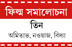 ‘তিন’-এ অভিনয়ের সুযোগ যা পেয়েছেন, অমিতাভ আর নওয়াজই পেয়েছেন। অমিতাভর কাছে অবশ্য এই অভিনয়টা জলভাত বলেই মনে হয়। ইনসাফের খোঁজে জনৈক বৃদ্ধের ভূমিকায় তাঁকে আগেও দেখেছি। ‘বিরুধ’ ছবিটার কথা যাঁদের মনে আছে, তাঁদের কাছে ‘তিন’ খুব চমকপ্রদ নাও লাগতে পারে। আর অমিতাভ অভিনয় করলে কোনও জনৈকই তো জনৈক থাকেন না। আমাদের চারপাশে ঘুরে বেড়ানো জন বিশ্বাসরা, পাড়ার পাঁচুবাবুরা এমনিতে ‘নোবডি’ হলেও অমিতাভ যখন তাঁদের ধারণ করেন, তাঁরা নিমেষে ‘সামবডি’ হয়ে ওঠেন! সেখানেই তারকার দ্যুতি! ভাঙা টেপ রেকর্ডার, ভাঙা স্কুটার সম্বল করেই তিনি যোদ্ধা। আর সবার উপরে তিনি অমিতাভ বচ্চন। দৈবাৎ তাঁর হাত কেটে রক্ত বেরিয়ে গেলে গোটা হল সমব্যথায় ইশশ বলে ওঠে! অমিতাভর সঙ্গে নাসিরউদ্দিনের স্টুপিড কমন ম্যান এইখানে আলাদা হয়ে যায়।