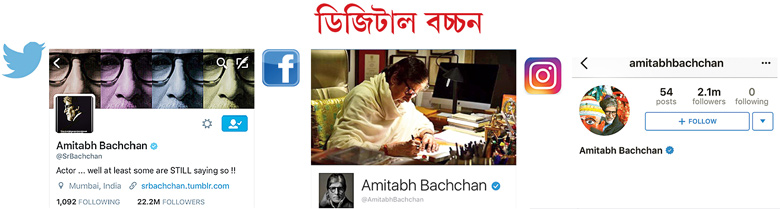 অমিতাভ: অ্যাকচুয়ালি নাউ ওটা পাঁচ কোটি ছাড়িয়ে গিয়েছে। ফেসবুক, টুইটার, ব্লগ, ইন্সটাগ্রাম — সব যোগটোগ করে।