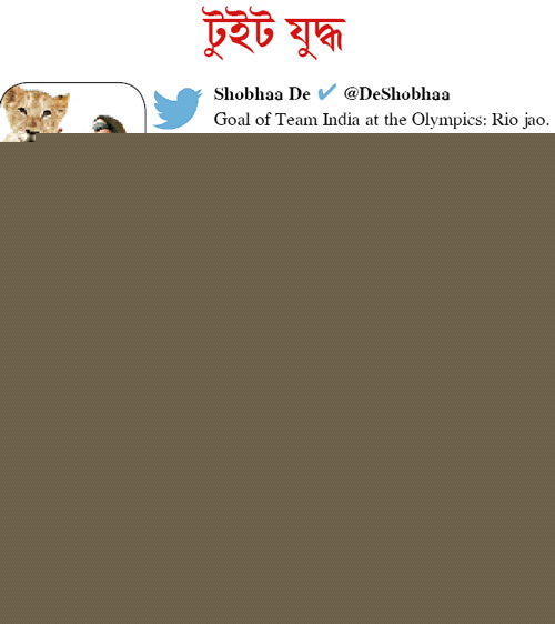 • আপনার হালফিলের আক্রমণাত্মক মনোভাবের আরও একটা প্রকাশ পাওয়া গেল অলিম্পিক্সের সময়। যখন শোভা দে-র অলিম্পিক্সের যাওয়া ভারতীয় প্রতিযোগীদের উদ্দেশে করা তাচ্ছিল্যভরা টুইটে পাল্টা টুইট করলেন বীরেন্দ্র সহবাগ। আপনি সহবাগের মন্তব্যটা শুধু রিটুইটের মাধ্যমে সমর্থনই নয়, নিজেও ব্যঙ্গশাণিত একটা টুইট করলেন। চাঁদমারি অবশ্যই শোভা দে!