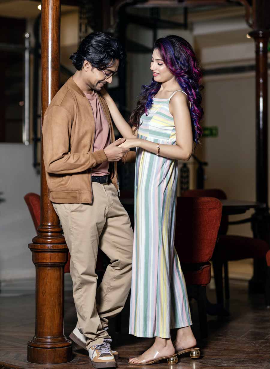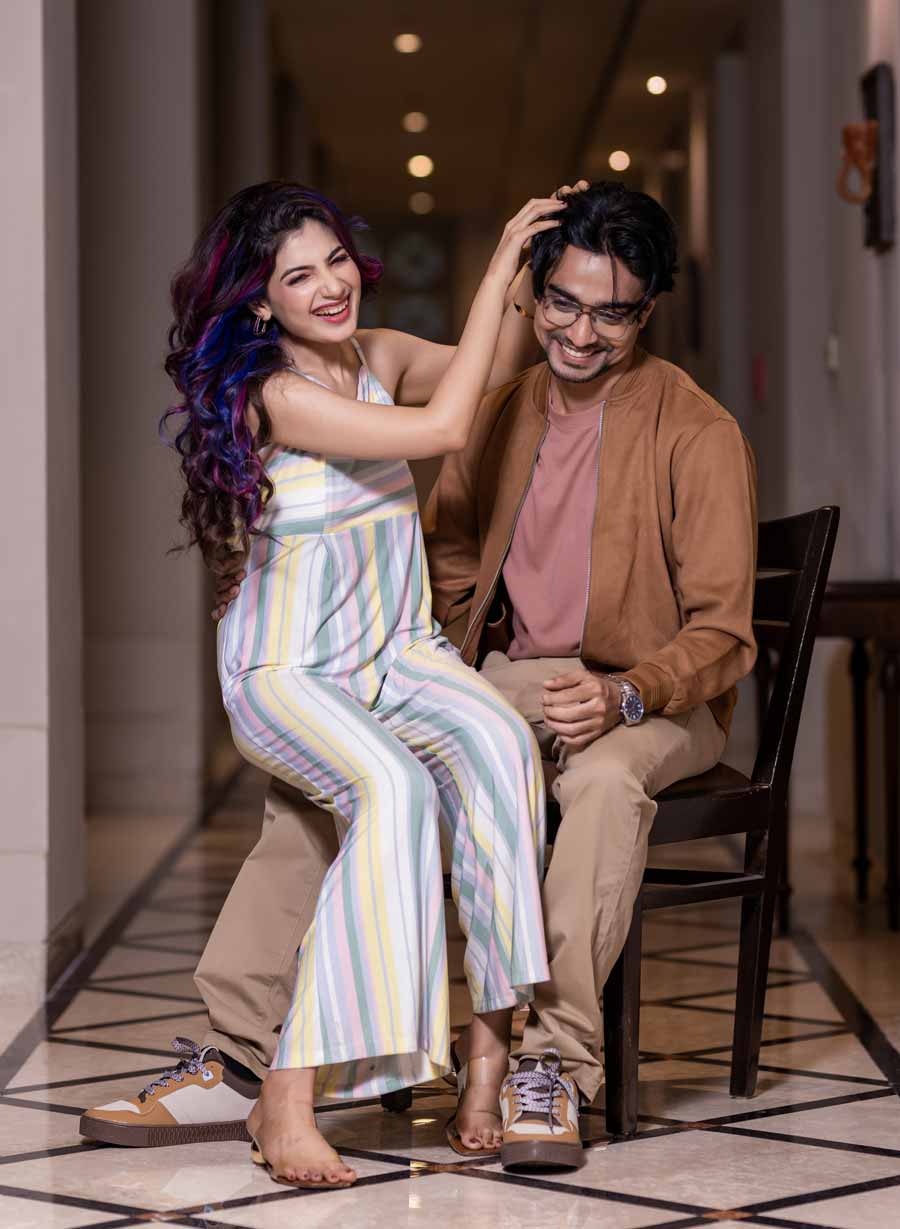 অর্পণ যেমন খুবই চুপচাপ, শান্ত প্রকৃতির, নায়িকা তেমনই হাসিখুশি-প্রাণোচ্ছল। অর্ণ মুখোপাধ্যায়ের নাটকের দলের সদস্য অর্পণ। তাঁকে মঞ্চেই প্রথম দেখেছিলেন পরিচালক। সেখান থেকেই অর্পণকে বেছে নেওয়া। যদিও আগে অভিনেতাকে দর্শক দেখেছেন একটি ধারাবাহিক এবং বেশ কিছু ওয়েব সিরিজ়ে। এই ছবিতে তিনি এক সাংবাদিকের ভূমিকায়। আর লহমা শিক্ষানবিশ সাংবাদিক। রাজনৈতিক প্রেক্ষাপটে তৈরি এই ছবিতে সংবাদমাধ্যম এবং সাংবাদিকের চরিত্রের গুরুত্বপূর্ণ ভূমিকা থাকবে তা আন্দাজ করা যায়। টলিপাড়ায় প্রথম বার দর্শক একসঙ্গে দেখবে অর্পণ এবং লহমাকে। শুটে যাওয়ার আগে আনন্দবাজার ডট কমের ক্যামেরায় ধরা পড়ল নতুন জুটির অন্য সমীকরণ।