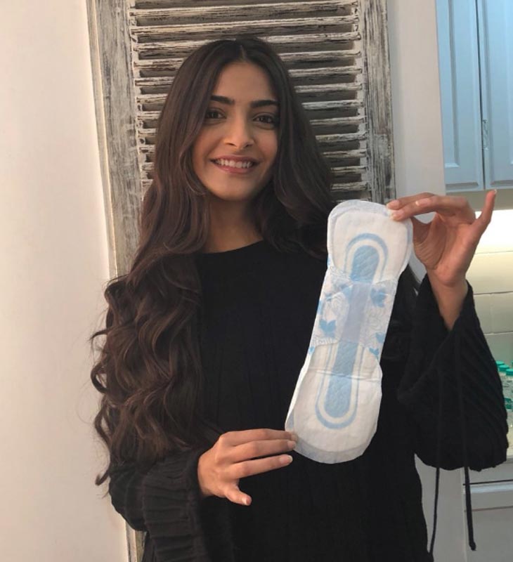 হাতে স্যানিটারি ন্যাপকিন নিয়ে দাঁড়িয়ে সোনম কপূর। ছবি তুলেই সটান পোস্ট করে দিলেন টুইটারে।