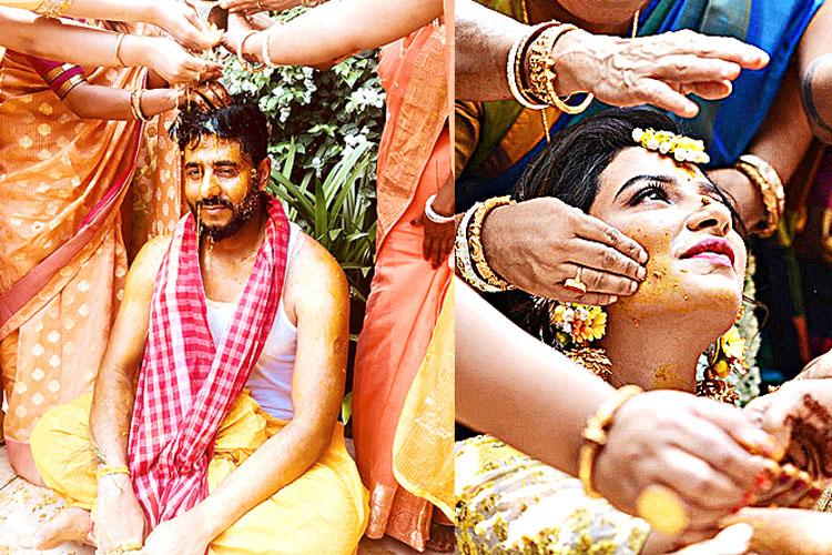 শুক্রবার ১১ মে ভোর চারটেয় জল সইতে যাওয়া ও দধিমঙ্গল দিয়ে শুরু হয় বিয়ের উপচার। বেলা বাড়তে প্রথমে রাজের গায়েহলুদ হয়। বরের গায়ে ছোঁয়ানো হলুদ দিয়ে হয় শুভশ্রীর গায়েহলুদ। কনের পরনে ছিল ডিজ়াইনার পূজা প্রসাদের তৈরি সোনালি-হলুদ লেহঙ্গা। কাঠচাঁপা, সূর্যমুখীতে সেজে ধরা দিয়েছিলেন শুভশ্রী। বরের বাড়ি থেকে পাঠানো সারি সারি তত্ত্বের মাঝে নজর কেড়েছিল টেম্পল জুয়েলারির সেট।