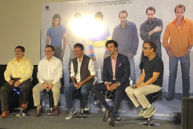 ‘সঞ্জু’র টিজার লঞ্চ অনুষ্ঠানের সেই মুহূর্ত। ছবি: টুইটারের সৌজন্যে।