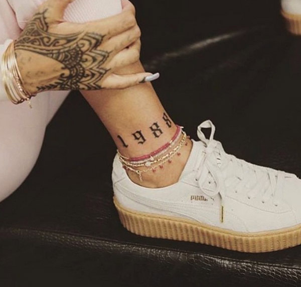ট্যাটু তাঁর বরাবরের পছন্দের সাজ। এ বার নিজের জন্ম সালও ট্যাটুর মাধ্যমে শরীরে এঁকে রাখলেন পপ তারকা রিহানা। ১৯৮৮তে তাঁর জন্ম। তাই পায়ের গোড়ালিতে ট্যাটুর মাধ্যমে খোদাই করে রাখলেন নিজের জন্ম সাল। আর সেই ছবি অনুরাগীদের জন্য শেয়ারও করলেন ইন্সটাগ্রামে। ছবিতে দেখা যাচ্ছে ডান পায়ে সাদা জুতো ফিতে দিয়ে বাঁধা। পায়ে পরা রয়েছে সরু চেনের মতো কয়েকটি গয়না। ঠিক তার ওপরেই বেশ কায়দা করে ‘১৯৮৮’ সংখ্যাটি ট্যাটু করা রয়েছে।