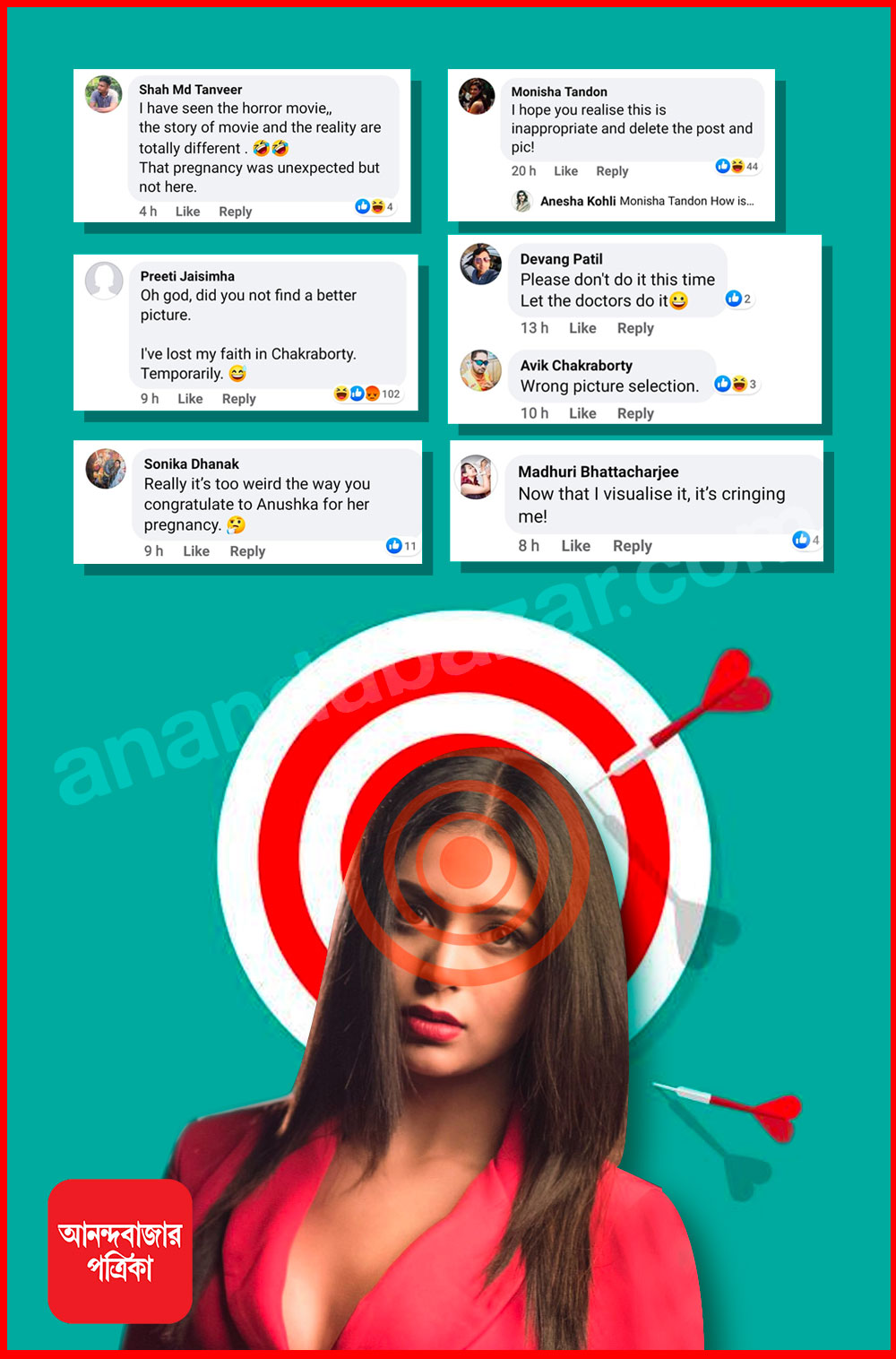 এই ছবি পোস্টের পরেই নেটিজেনদের একাংশ ক্ষোভ উগরে দিলেন অভিনেত্রীর উপর। কেউ বললেন এমন খুশির খবরকে ঘিরে শুভেচ্ছা জানানোর জন্য এমন ছবি মোটেই উপযুক্ত নয়, আবার কেউ তাঁর কড়া প্রশ্ন ছুড়ে নায়িকার কাছে জানতে চেয়েছেন, তাঁর কাছে কি আর কোনও ছবিই ছিল না নিজের উচ্ছ্বাস দেখানোর জন্য! একজন আবার লিখেই বসলেন, “ফুটেজ পাওয়ার জন্য যা ইচ্ছে করবেন? অনুষ্কার সঙ্গে কাজ করেছেন সেটা প্রমাণ করার জন্য এ সব করছেন?”। অন্য একজন আবার লিখলেন, “আশা করি বাস্তবেও এমন কিছু ঘটবে না।’’