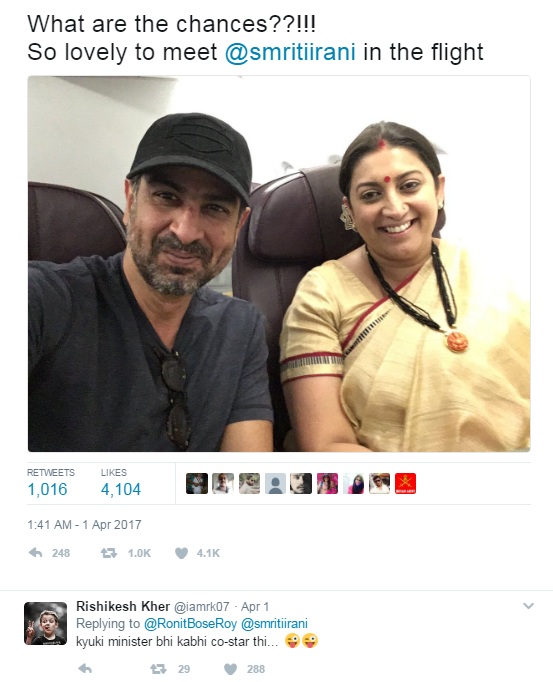 সাড়ে দশটা মানেই পরিবারের ছোট থেকে বড় সকলেই হাজির হতেন টিভি পর্দার সামনে। ‘কিঁউ কি সাস ভি কভি বহু থি' এতটাই জনপ্রিয় হয়ে উঠেছিল। আর 'কিউকি সাস ভি কভি বহু থি' মানেই ছিল তুলসী। তুলসী আর মিহিরের পরিবার। সেই তুলসী-মিহির অর্থাৎ স্মৃতি ইরানি এবং রনিত রায়— দু’জনের আবার দেখা হল। তা-ও আবার বিমান সফরের সময়।