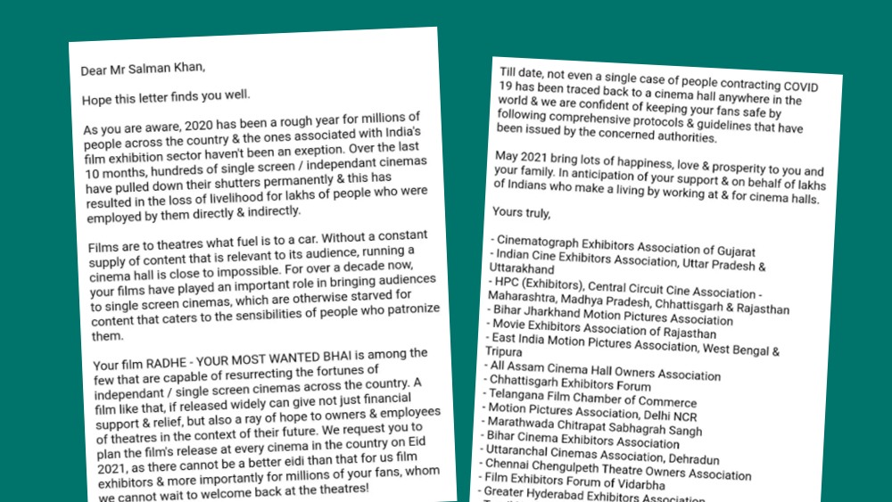 সলমনকে লেখা চিঠিতে জানানো হয়েছে, তাঁর ছবি অনেক বছর ধরে সিনেমাহলে দর্শক নিয়ে এসেছে তাই এই কঠিন পরিস্থিতে আরও একবার ঘুরে দাঁড়াতে সলমনের সাহায্যপ্রার্থী তাঁরা। তাঁদের কথায়, ‘রাধে: ইওর মোস্ট ওয়ান্টেড ভাই এমন একটি ছবি যা সিঙ্গল স্ক্রিনকে পুনরুজ্জীবিত করে তুলতে পারে।’ কিন্তু এ বিষয়ে খোদ সলমন কী ভাবছেন? জন্মদিনে ছবি মুক্তির প্রসঙ্গে প্রশ্ন করা হলে অভিনেতা জানান, এই মুহূর্তে এ সব নিয়ে তিনি কিছু ভাবছেন না। ছবির থেকেও তিনি দর্শকদের নিয়ে বেশি চিন্তিত। সলমনের কথায়, “এখন মানুষের সুরক্ষাটাই সবচেয়ে আগে।ভগবান না করুন, থিয়েটারে গিয়ে যদি কারও কিছু হয়, সেটা আমরা কেউই মেনে নিতে পারব না।”