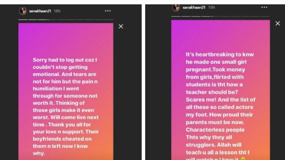 সানা খানের ইন্সটা স্টোরির স্ক্রিনশট