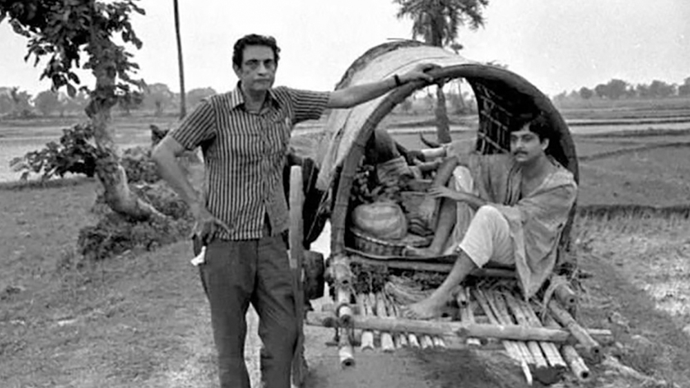 অনঙ্গর বৌ তার স্বামীর দৃষ্টি আকর্ষণ করে গ্রামের সীমার বাইরে থেকে মাঠ পেরিয়ে কারা যেন বোঁচকা-বুঁচকি-হাঁড়ি-কলসি নিয়ে এগিয়েই আসছে— জনাছ’য়েক লোকের একটা গোটা পরিবার। একটু পরে বোঝা যায়, সেই পরিবারটির কর্তা গোবিন্দ চক্রবর্তী। ক্যামেরায় ধরা কম্পোজিশনটা এমন যে, ফ্রেম-এর ডাইনে-বাঁয়ে তিলমাত্র ফাঁকা জায়গা নেই। সবটাই জুড়ে পরিবারের সেই সদস্যরা। এর পরেই শুরু হয় আঙ্কিক নিয়ম মেনে ছন্দোবদ্ধ কাটিং— সেই দলটির সেকশনাল ক্লোজ শট। সেই ক্লোজ শট-এ কারও মাথায় একটা মাটির হাঁড়ি, কারও বগলে একটা ছেঁড়া মাদুর, কেউ হাত দিয়ে ধরে আছে কোনও শিশুর হাত। দুঃস্থ পরিবারের শেষ সম্বলটুকু সঙ্গে নিয়ে এগিয়ে আসছে।