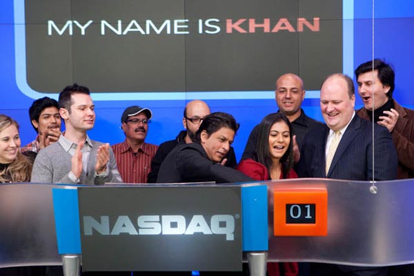 মার্কিন স্টক মার্কেট ‘ন্যাসদাক’-এ শাহরুখ খান, কাজল এবং সংস্থার কর্মীরা। ছবি— সংগৃহীত।