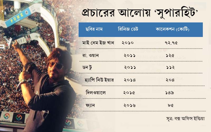 কখনও কখনও বক্স অফিসে মুখ থুবড়ে পড়লেও, এমন ‘বাদশাহি’ প্রচারের আলোয় ভাল ব্যবসা করা ছবির সংখ্যাও কিন্তু বাদশার ঝুলিতে খুব একটা কম না। পাশাপাশি, আইপিএলে কেকেআর দলের কর্ণধার শাহরুখ ক্রিকেটের মঞ্চকেও ব্যবহার করেছেন তার ছবির জনপ্রিয়তা বাড়াতে।