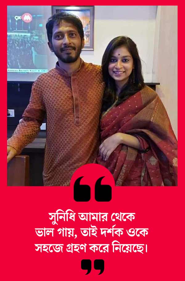 অর্ণব: না, ও খুব ভাল গায়িকা। আমরা সকলেই এই বিষয়ে সহমত হয়েছি বলেই ওকে সুযোগ দেওয়া হয়েছে। আর সুনিধি আমার থেকে ভাল গায়। তাই দর্শক ওকে সহজে গ্রহণ করে নিয়েছে।
