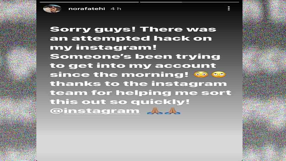 অবশেষে রহস্যের সমাধান করলেন নোরা স্বয়ং। শুক্রবার রাতে ইনস্টাগ্রাম স্টোরিতে তিনি লিখেছেন, ‘সকলের কাছে ক্ষমা চাইছি। আমার ইনস্টাগ্রাম হ্যাক করার চেষ্টা হয়েছিল। সকাল থেকেই কোনও ব্যক্তি আমার ইনস্টাগ্রাম অ্যাকাউন্টে প্রবেশ করার চেষ্টা করছে।’ তাঁকে দ্রুত সাহায্যের জন্য ইনস্টাগ্রাম কর্তৃপক্ষকেও ধন্যবাদ জানিয়েছেন নোরা।