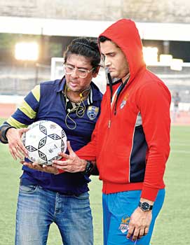 পুজো প্যান্ডেল ছেড়ে ফাঁকা স্টেডিয়াম। ধুতি-পাঞ্জাবি লুক ছেড়ে হুডি। “চেয়েছিলাম একটা গ্ল্যাডিয়েটর ইমেজ তৈরি করতে। পোশাক হিসেবে সৌরভকে বললাম একটা হুডি পরতে। শু্যটিংয়ের আগে শ্যাম্পু করতে মানা করে দিয়েছিলাম,” জানান পরিচালক। আর ওই একগাল দাড়ি? কী ভাবে রাজি করালেন সেটাতে? “আপত্তি করেনি। গ্ল্যাডিয়েটরের ইমেজটার জন্য ক্লিন শেভ লুকটা ভাল লাগত না,” বললেন পরিচালক।