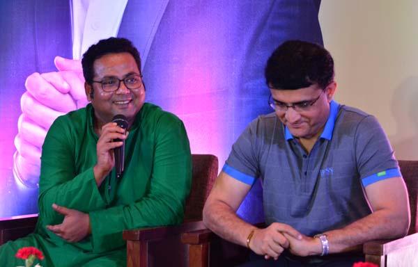 পরিচালক শুভঙ্কর চট্টোপাধ্যায়ের সঙ্গে সৌরভ গঙ্গোপাধ্যায়।— নিজস্ব চিত্র।