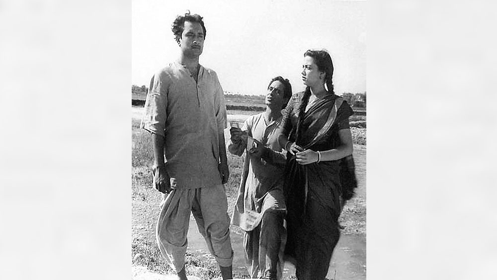 ‘নয়া সফর’ ছবির একটি দৃশ্যে অন্য অভিনেতাদের সঙ্গে বসন্ত চৌধুরী