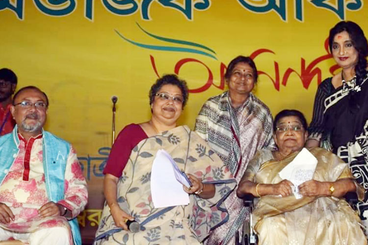মঞ্চে শ্রাবণী, সুমিত্রা, স্বাগতালক্ষীর সঙ্গে অন্যান্যরা।