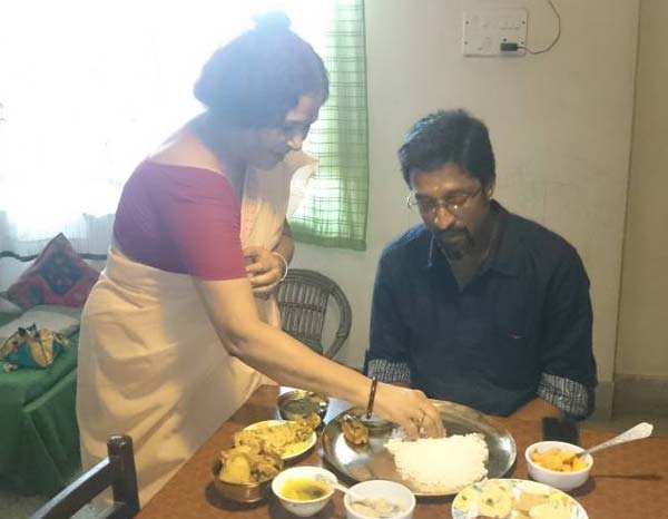 জামাইষষ্ঠীর মহাভোজ। শাশুড়ি মায়ের সঙ্গে অভিষেক। ছবি সৌজন্যে: সুদীপ্তা চক্রবর্তী।