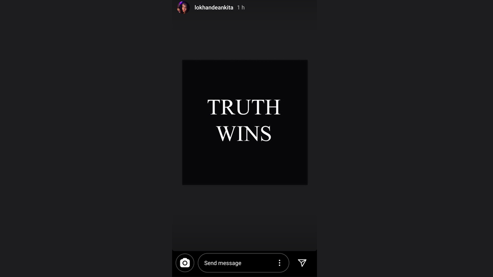 রিয়া চক্রবর্তীর বিরুদ্ধে খোদ সুশান্ত সিংহ রাজপুতের বাবা কেকে সিংহ পটনার রাজেন্দ্রনগর থানায় মঙ্গলবার এফআইআর দায়ের করার পরেই উত্তপ্ত সোশ্যাল মিডিয়া। সেই উত্তেজনা আরও বাড়িয়ে দিলেন অঙ্কিতা লোখান্ডে। আজ ইনস্টাগ্রাম স্টোরিতে কালো ব্যাকগ্রাউন্ডে সাদা অক্ষরে তিনি লেখেন, ‘সত্যের জয়’। রিয়ার বিরুদ্ধে এফআইআর-এর পরেই ইনস্টায় এ ভাবে লিখে ঠিক কী বোঝাতে চাইছেন অঙ্কিতা? তাই নিয়ে শুরু হয়েছে জল্পনা।