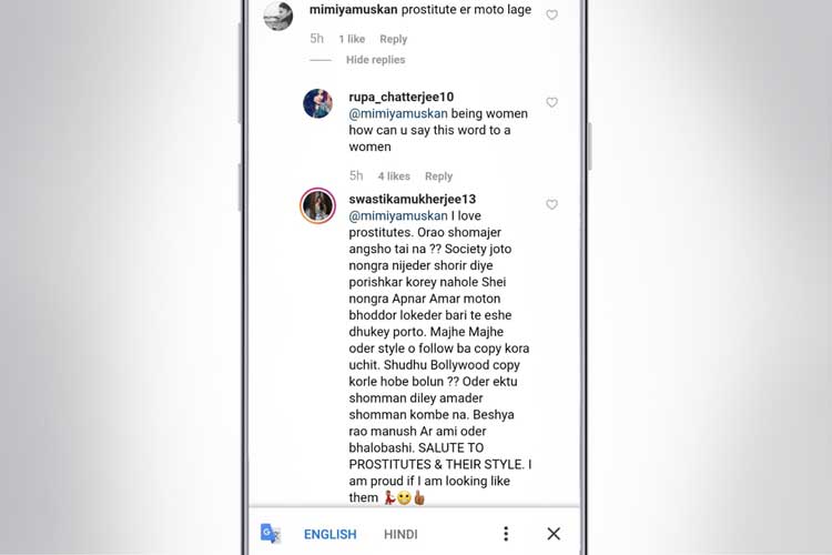 এই প্রসঙ্গে স্বস্তিকা সোশ্যাল মিডিয়ায় পরে আবার বিবৃতি দিয়েছেন। লিখেছেন,‘ আমি কোনও পোস্ট ডিলিট করিনি। কারণ তার কোনও প্রয়োজন আমার নেই। যে মহিলা মন্তব্য করেছেন যে, আমাকে যৌনকর্মীর মতো দেখতে লাগছে, তিনি নিজেই পোস্টটি ডিলিট করেছেন।’