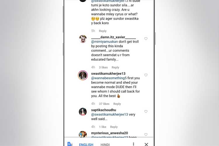 তবে শুধু মাত্র ওই ফলোয়ারই নন। আরও বেশ কিছু ফলোয়ারের বিরূপ মন্তব্যের জবাবও ঠাণ্ডা মাথাতেই দিয়েছেন স্বস্তিকা।