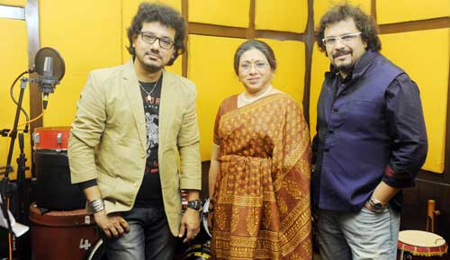 বাংলা কবিতা থেকে মুখ ফিরিয়ে নিয়েছে নতুন প্রজন্ম। ছন্দের মাধ্যমে এই প্রজন্মকে বাংলা ভাষা, বাংলা কবিতার দিকে ফিরিয়ে আনা যায়। সেই কথা মাথায় রেখেই রবীন্দ্রনাথের কবিতায় ড্রাম থেকে খট্টমের মতো যন্ত্র ব্যবহার করে আরও গতিময় করেছেন অ্যালবামের সঙ্গীত-আয়োজক বিক্রম ঘোষ। কবিতায় বিভিন্ন হাইম, নানা রকম তান, বোল ব্যবহার করা হয়েছে— শুধুই তথাকথিত কবিতাপাঠ বা আবৃত্তি নয়, এই অ্যালবামে ব্যাকগ্রাউন্ড মিউজিকের মাধ্যমে গুরুত্ব পেয়েছে কবিতা-নির্ভর পারফর্ম্যান্স। ১৯০৬-এ লেখা ‘ভারত বিধাতা’ কবিতা ১৯১১-য় জাতীয় সঙ্গীতের মর্যাদা পায়। ‘‘এই ‘জনগণমন’ আমি পুরোটা কোনও দিন শুনিনি। এখানে ছন্দের মধ্যে দিয়ে, ব্যাকগ্রাউন্ডে তানের ব্যবহার করে পুরো কবিতাটা যে ভাবে পারফর্ম করা হয়েছে, তা এককথায় অসাধারণ,’’ বললেন তনুশ্রী। দেড় বছর ধরে রেকর্ডিং হয়েছে অ্যালবামের। কবিতার জন্য এত বড় বাজেটের কাজ কলকাতায় এই প্রথম। পাশ্চাত্য আর প্রাচ্যের স্বরে রবীন্দ্রনাথের কবিতা নতুন সুরে বেজে উঠেছে। অথচ কবিতার অনুভব কোথাও ম্লান হয়নি।